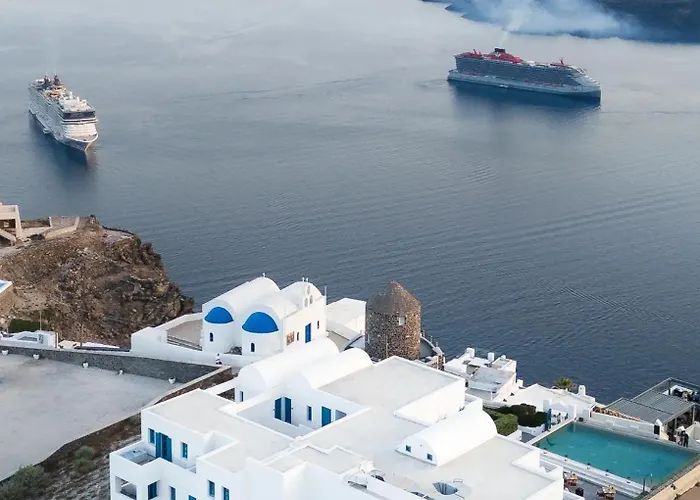 Situato a una distanza di 1 km dalla Roccia di Skaros, l'Aeifos Boutique Hotel Imerovigli dispone di un museo archeologico e di autobus navetta. Questo hotel ha una piscina a sfioro, un lounge bar e vanta una posizione a breve distanza dalla Roccia di Skaros.